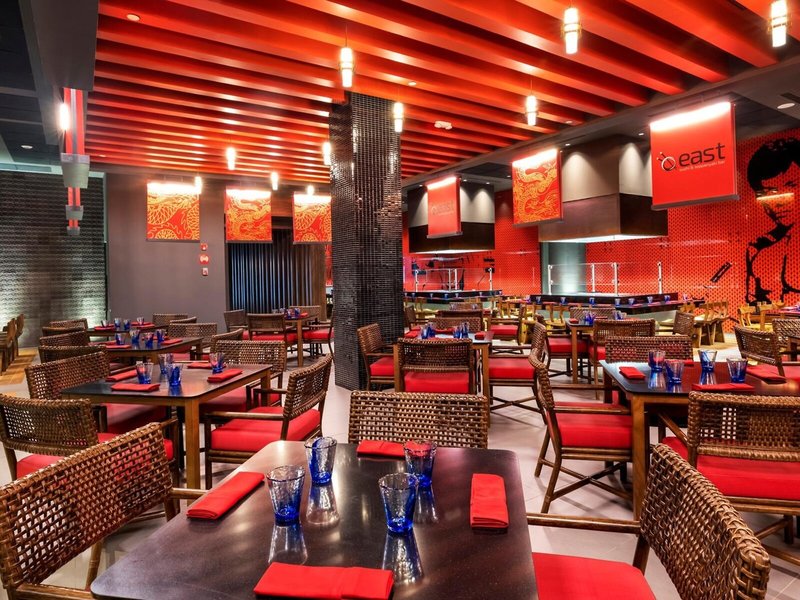 - Restaurant „East Sushi & Teppanyaki Bar“: Küche: asiatisch, Teppanyaki, glutenfreie Gerichte, vegane Gerichte, à la carte, Showcooking, täglich 18:00 Uhr - 22:00 Uhr, klimatisierbar, angemessene Kleidung erwünscht
