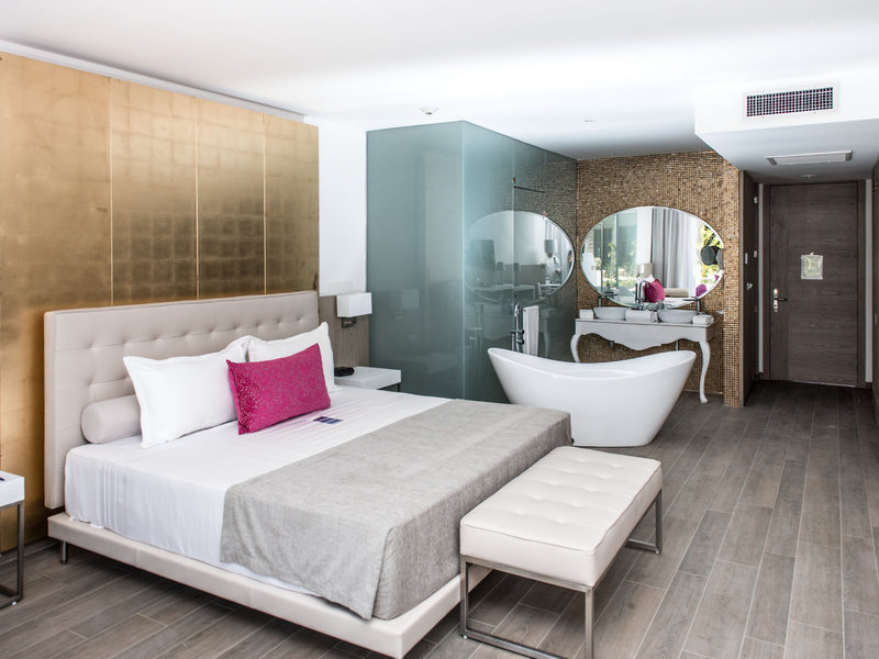 - Junior Suite Deluxe Hot Tub (JSX5), junior lakosztály, alsó korhatár a szobában: 18 év, medence felőli, kertre néző, medencére néző, kertre néző, kb. 45 m², összesen szoba ebben a szobatípusban: 1, elrendezés az alábbiak szerint: kombinált nappali/hálószoba, 24 hálószoba, 1 king-size ágy, 1 kanapé, szúnyogháló, légkondi: központilag szabályozható, padló: járólap, széf: ingyenes, all Inclusive, kanapé, vasaló, vasalódeszka, kávéfőző, minibár: ingyenes, üdítőitalok, víz, minibár utántöltés: naponta, telefon, Internet: WLAN/WiFi: ingyenes, all inclusive, televízió: síkképernyős, Deutsche Welle, műholdas TV, szobaszerviz: ingyenes, takarítás, zuhany, esőzuhany, fürdőkád a szobában, WC, fürdőköpeny: ingyenes , az all inclusive ellátáshoz, papucs: ingyenes, az all inclusive ellátáshoz, a fürdőszoba üvegfallal elválasztva , hajszárító, kozmetikai tükör, erkély: pezsgőfürdővel