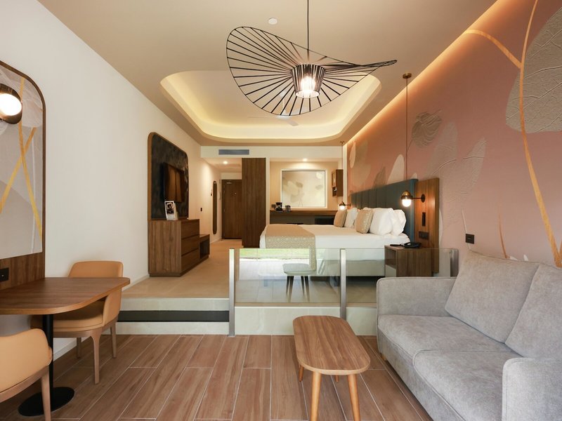 - Junior Suite Garden View - Elite Club (JSG2), Juniorsuite, Gartenblick, ca. 39 m², Gesamtanzahl der Räume in diesem Zimmertyp: 1, Aufteilung wie folgt: kombiniertes Wohn-/Schlafzimmer, Babybett: ohne Gebühr, Anfrage notwendig, Klimaanlage: zentral gesteuert, Safe: ohne Gebühr, Deckenventilator, Getränkespender, Sitzecke, Sofa, Bügeleisen, Bügelbrett, Kaffeemaschine, Minibar: ohne Gebühr, Telefon, Internet: WLAN/WiFi: ohne Gebühr, Fernseher: Flatscreen, Sat-TV, Roomservice: 24 Stunden, ohne Gebühr, Dusche, WC, Föhn, Balkon oder Terrasse: mit Sitzgelegenheit