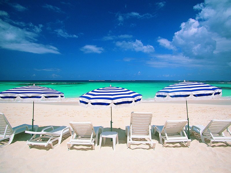 - Strand: napernyők a strandon, nyugágyak a strandon, homokos strand