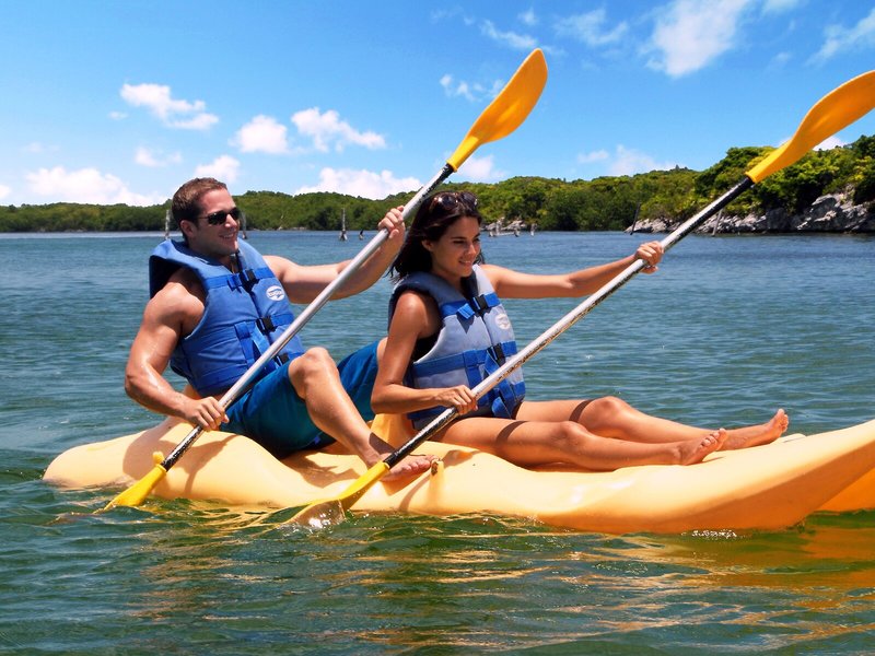 Sport & Fitness: Aktive Erholung erwartet die Gäste im Poolbereich mit 3 Outdoorpools. Das Hallenbad bietet witterungsunabhängiges Badevergnügen. Darüber hinaus gibt es einen Planschbereich für Kinder. Nervenkitzel auf der Wasserrutsche, erfrischende Getränke an der Poolbar und wohlige Muskelentspannung im Whirlpool – für jede Stimmung und Kondition bietet der Badebereich etwas an. Auf der Sonnenterrasse mit Liegestühlen und Schirmen lässt sich der Urlaub genießen. Die Unterbringung bietet mit Radfahren/Mountainbiking, Tennis, Beachvolleyball und Volleyball Möglichkeiten zum Sport im Freien. Eine Vielzahl an Sportarten steht zur Verfügung, darunter Wassersportarten wie Windsurfen, Tretbootfahren, Kanufahren, Schnorcheln, Tauchen und Aqua-Fitness und gegen Gebühr Jetskifahren und Motorbootfahren. Das Resort bietet Sportfreunden auch viele Aktivitäten im Innenbereich, nämlich ein Fitnessstudio, Tischtennis, Yoga und Aerobic. In der Anlage werden verschiedene Wellnessangebote wie ein Spa, eine Sauna, ein Schönheitssalon und Hydrotherapie-Anwendungen offeriert. Gegen Gebühr können die Gäste zudem ein Dampfbad und Massage-Anwendungen in Anspruch nehmen. Große und kleine Gäste haben die Möglichkeit, interessante Unterhaltungsprogramme zu erleben.