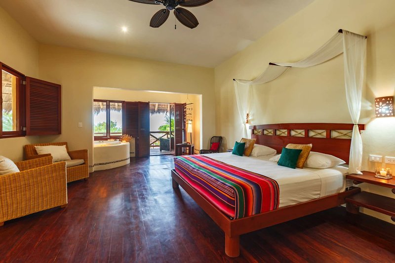 Juniorsuite Superior: Verfügen über die gleiche Ausstattung wie die Juniorsuiten, liegen allerdings in erster Strandreihe und haben teilweise Meerblick (je nach Verfügbarkeit) und haben einen zusätzlichen Whirlpool (2JS).