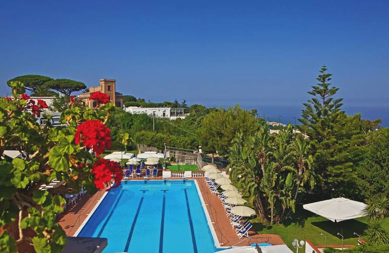 Ausstattung: Das kleine, typisch italienisch eingerichtete Hotel, verfügt über 60 Zimmer, eine Rezeption mit kleiner Lobby, Bar und Panorama-Restaurant sowie eine Terrasse mit einem herrlichen Blick über das Meer und die Bucht von Capri. In der Gartenanlage befindet sich der Swimmingpool (1.5.-30.9.) mit Sonnenstühlen und Schirmen inklusive, sowie die Pool- und Snackbar.