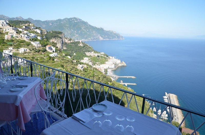 szálloda egy sziklán található, ahonnan lenyűgöző kilátás nyílik az Amalfi-öbölre. a strand az kb 3 km-re. Amalfi városközpontja, ahol számos bevásárló- és szórakozóhely, valamint éttermek és bárok sorakoznak, körülbelül 5 km-re található. A nápolyi repülőtér távolsága körülbelül 63 km.