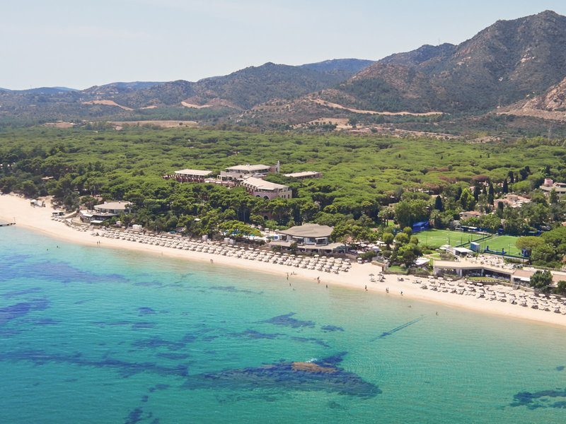 Lage & Umgebung Als eine Oase der Ruhe liegt das luxuriöse Hotel Pineta mit seinem eleganten Mobiliar und seinem ruhigen Garten inmitten eines weitreichenden mit Bäumen bepflanzten Geländes nahe des Meeres und des "Aquaforte Spa". Durch die zweistöckigen Architektur und die Hufeisen-Anordnung passt sich das Hotel auf natürliche Weise in die sardische Landschaft ein.