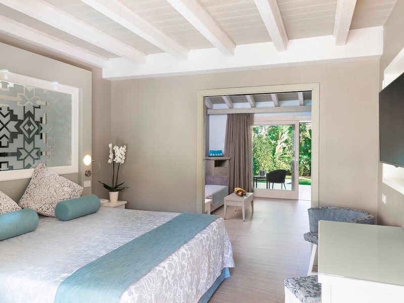 - Luxury Family Bungalow (DZX3), Bungalow, Nichtraucherzimmer, Gartenseite, Parkseite, Gartenblick, Innenhofblick, ca. 44 m², letzte Komplettrenovierung 2018, Gesamtanzahl der Räume in diesem Zimmertyp: 2, Aufteilung wie folgt: bestehend aus 2 Zimmern, optisch getrennt durch Schiebetür, 1 Queen Size Bett, 1 Schlafsofa, 2 Zustellbetten, Klimaanlage: ohne Gebühr, individuell regelbar, kalt, warm, Heizung: individuell regelbar, Safe: ohne Gebühr, Getränkespender, Sofa, Schreibtisch, Minibar: gegen Gebühr, Wasser, Snacks, Minibarauffüllung, Telefon, Internet: WLAN/WiFi: ohne Gebühr, Fernseher: Flatscreen, im Wohnbereich, Sat-TV, Roomservice: gegen Gebühr, Dusche, Badewanne, Terrasse