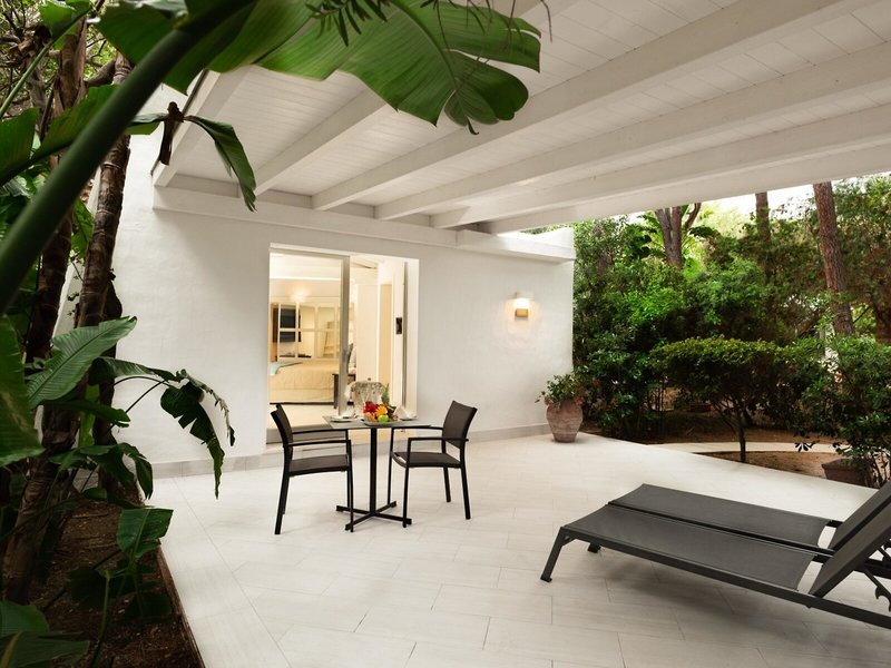 - Luxury Bungalow (BUX1), Gartenblick, ca. 35 m², Gesamtanzahl der Räume in diesem Zimmertyp: 1, Aufteilung wie folgt: 1 Schlafzimmer, 1 Doppelbett, Babybett: ohne Gebühr, Anfrage notwendig, Klimaanlage: ohne Gebühr, individuell regelbar, zentral gesteuert, Heizung: zentral gesteuert, Safe, Schreibtisch, Minibar: gegen Gebühr, Telefon, Internet: WLAN/WiFi: ohne Gebühr, Fernseher: Flatscreen, Sat-TV, Roomservice: gegen Gebühr, Badewanne oder Dusche, WC, Föhn, Balkon oder Terrasse, Terrasse: mit Sitzgelegenheit