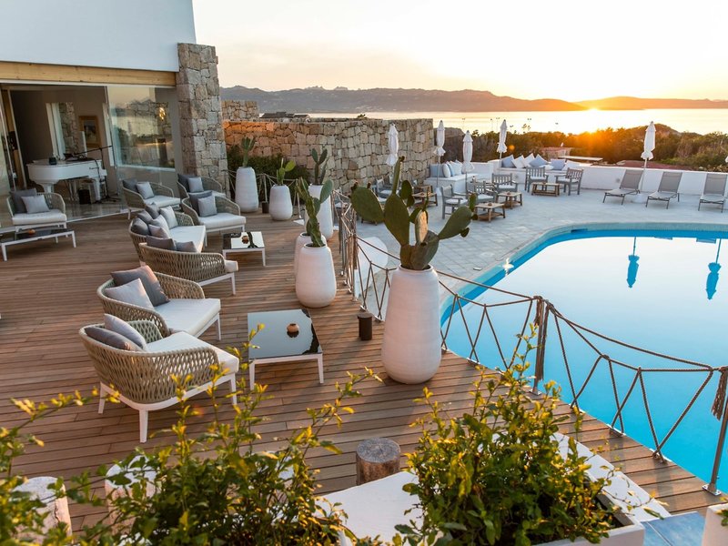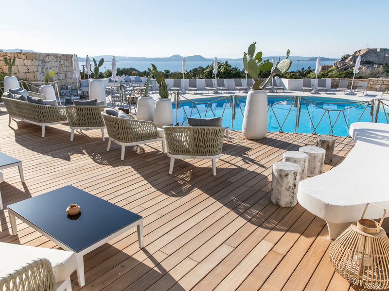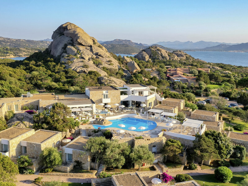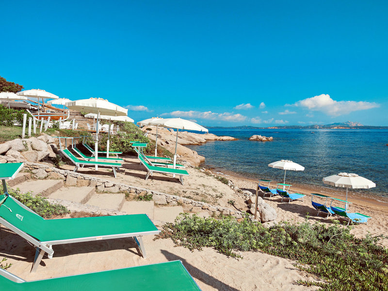 Lage & Umgebung Nordwestlich und etwas außerhalb von Baia Sardinia (ca. 800 m) gelegen. Umgeben von Felsen aus rosafarbenem Granit mit einem fantastischen Blick über das Maddalena Archipel und die Bucht von Arzachena. Die hoteleigene Strandbucht Kokka Beach mit einer Beachbar ist ca. 200 m entfernt. Weitere Strände, die zu den schönsten der Region zählen, sind vom Hotel aus schnell erreicht.