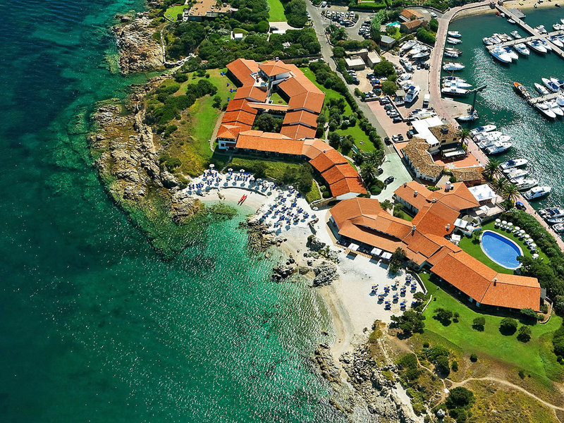 Elhelyezkedés és környezet: Ez a bájos szálloda egy hosszú, csillogó ezüstös, kristálytiszta vizű tengerparton húzódik. Az épület feltűnő jellegzetessége a vízparti szakasznak, egyik oldalán a legendás kikötővel, a másikon pedig a káprázatos kék horizonttal. Porto Rotondo központja, piazzáival és butikjaival, mindössze néhány perc sétára található a kikötő mentén. Olbia és San Pantaleo körülbelül 15 km-re található.
