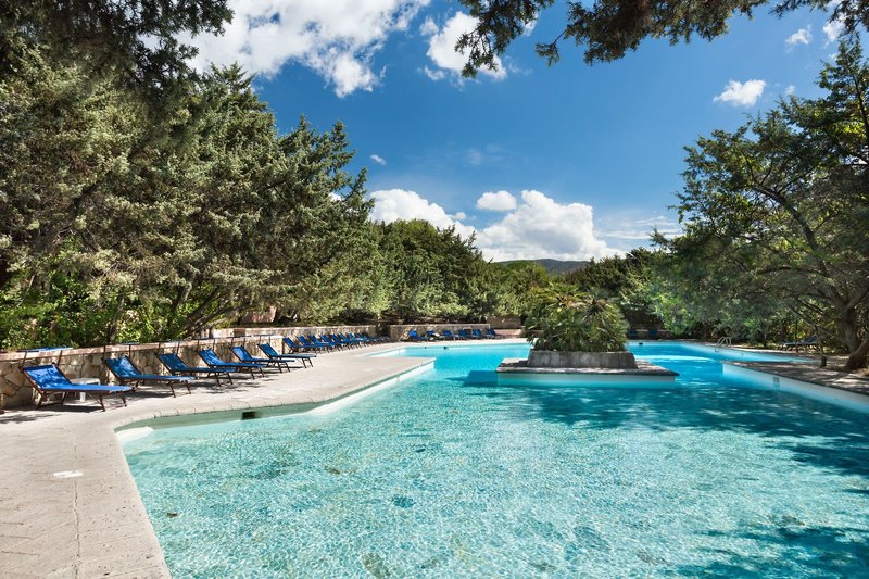 Ausstattung: Die 5 Hotels des Resorts verteilen sich auf über 280.000 m² herrlicher Macchia Landschaft mit Dünen, duftenden Wachholderbäumen und verfügen über insgesamt 496 Zimmer. 4 Rezeptionen, 9 Restaurants, 6 Bars und bieten Ihnen viel Raum zum Erholen und Genießen. In der großzügig angelegten schönen Außenanlage des Resorts befinden sich 6 Swimmingpools, Hauptpool im Hotel "I Ginepri", 2 Pools im Hotel "Le Palme", mit einem Kinderbecken mit Wasserspielzeug, Pool im Hotel "Le Rocce", ein Pool im Hotel "Le Sabine", und ein Pool für Kinder im "Villagoi Fantasia mit Liegen inklusive.