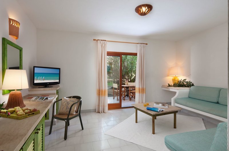 Suite Ginepri: Gleiche Ausstattung wie die Doppelzimmer, verfügen jedoch über ein separates Schlafzimmer, haben zusätzlich 2 Schlafsofas, oder 2 gemauerten Schlafsofas im Wohnraum und liegen in zentraler Lage des Resorts (SF2).