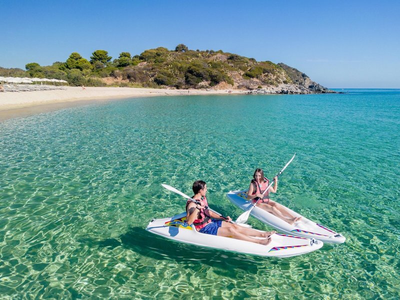 Lage & Umgebung Das Hotelgrundstück grenzt direkt an den hoteleigenen Sandstrand. Nach Costa Rei ca. 7 km, nach Villasimius ca. 10 km. Aufgrund der Größe des Resorts variiert die Entfernung zum Strand je nach Zimmerlage zwischen ca. 100 m und 300 m. Ein Mietwagen ist Aufgrund der Lage empfehlenswert.