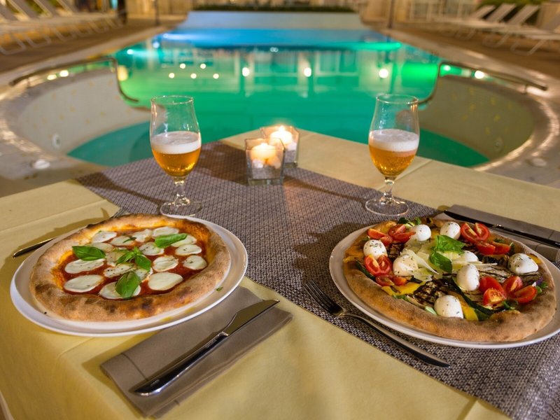 - Restaurant „Il Veliero“: Küche: international, glutenfreie Gerichte, Kindermenü, lactosefreie Gerichte, saisonale Gerichte, vegetarische Gerichte, Buffet, à la carte, Menüwahl, am Pool