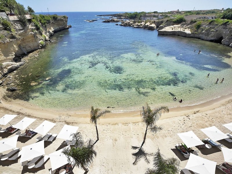 - Strand „Delle Latomie“: Sand, Bucht, hoteleigen, Liegen: ohne Gebühr, Sonnenschirme: ohne Gebühr