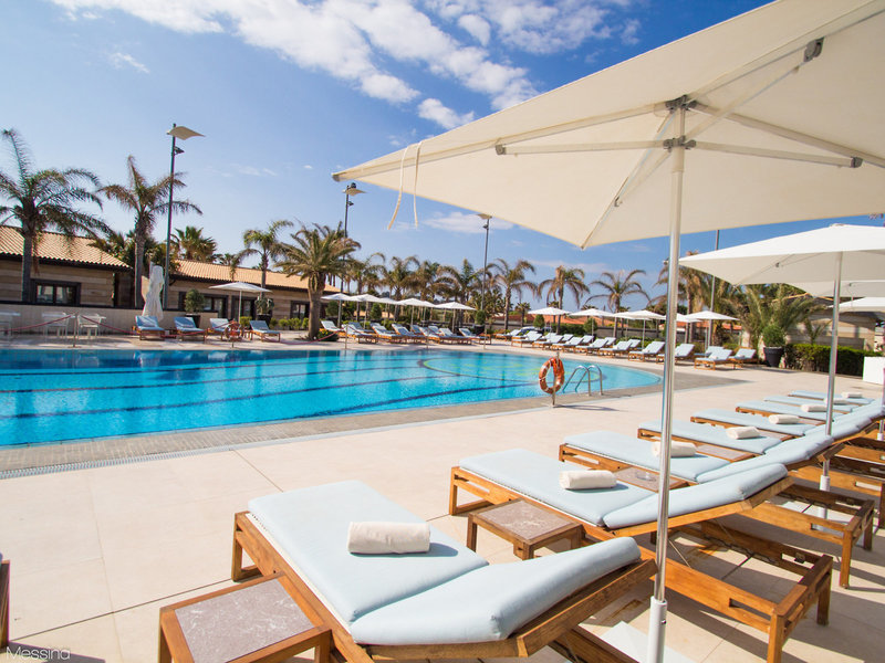 Elhelyezkedés és környezet Csendes, közvetlenül Ortigia szigetével szemben, egy fokon. A főépület és az 1 szintes szomszédos épület a szobákkal egy nagy, kb. 25.000 négyzetméteres területen található. Siracuse központja körülbelül 7 km-re található. A szálloda elhelyezkedése miatt autóbérlést ajánlunk.