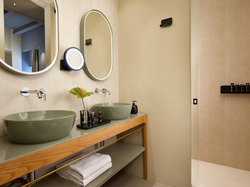 - Deluxe Ortigia vista Mare (DZX2), Doppelzimmer, Poolblick, Gartenblick, ca. 22 - 28 m², Gesamtanzahl der Räume in diesem Zimmertyp: 1, Aufteilung wie folgt: kombiniertes Wohn-/Schlafzimmer, 1 Doppelbett, Babybett: ca. 15 EUR, Anfrage & Reservierung notwendig, Klimaanlage: ohne Gebühr, zentral gesteuert, Heizung: zentral gesteuert, Safe: ohne Gebühr, Schreibtisch, Minibar: gegen Gebühr, Telefon, Internet: WLAN/WiFi: ohne Gebühr, Breitband-Internet/DSL: ohne Gebühr, Fernseher: Flatscreen, Sat-TV, Roomservice: gegen Gebühr, Tageszeitung: gegen Gebühr, Sprachen: deutsch, englisch, italienisch, französisch, Dusche, WC, Bademantel: ohne Gebühr, Slipper: ohne Gebühr, Föhn, Balkon oder Terrasse: mit Sitzgelegenheit