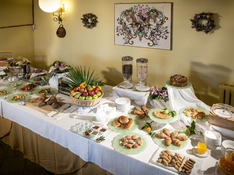 - Restaurant „La Corte dell'Abate“: Küche: italienisch, mediterran, regional, glutenfreie Gerichte: Anfrage notwendig, Kindermenü: Anfrage notwendig, Reservierung nicht notwendig, saisonale Gerichte: Anfrage notwendig, vegetarische Gerichte: Anfrage notwendig, à la carte, Menüwahl, Anfrage & Reservierung notwendig, gegen Gebühr, täglich 12:30 Uhr - 14:30 Uhr, klimatisierbar