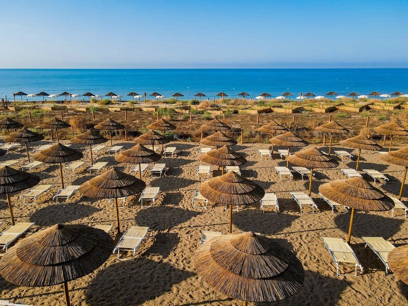 - Strand: Sand, privat, hoteleigen, Liegen, Sonnenschirme