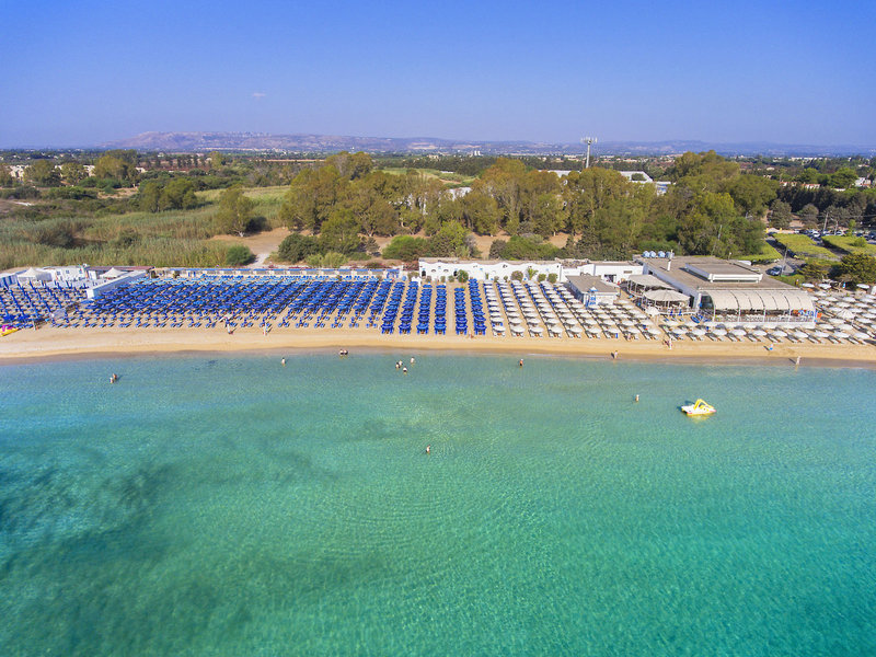 Lage & Umgebung Die weitläufige Anlage liegt außerhalb von Syrakus inmitten eines ca. 60 ha großen Naturschutzgebietes, direkt an den Strand (ca. 600 m entfernt) und die Felsküste grenzend. Der Ort Syrakus ist ca. 10 km entfernt.