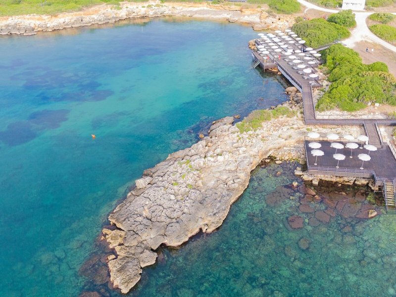 - „Wooden platforms“: Badeplateau, privat, Liegestühle: ohne Gebühr, Sonnenschirme: ohne Gebühr