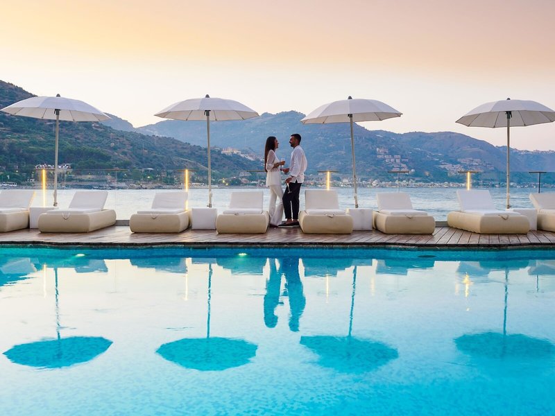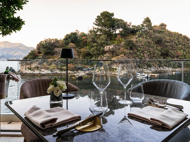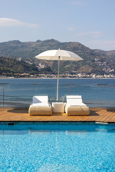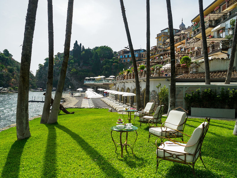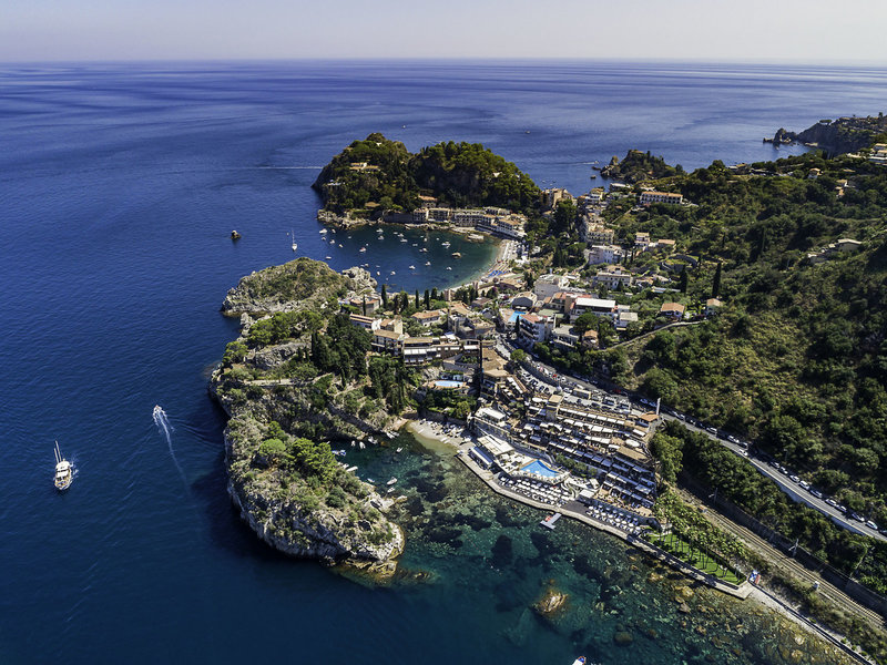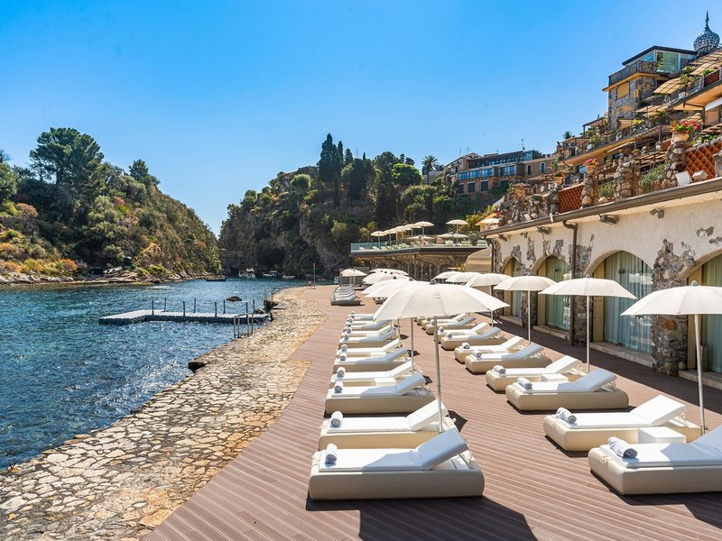 Lage & Umgebung Direkt oberhalb des Meeres an der Bucht von „Baia delle Sirene“ gelegen. Unterhalb des Pools befindet sich eine große Sonnenterrasse mit direktem Zugang zum Meer sowie Felsstrand mit direktem Einstieg ins Meer und einem schönen Badeplateau. In ca. 300 m Entfernung befindet sich die Seilbahn, mit der man ins Zentrum von Taormina gelangt.