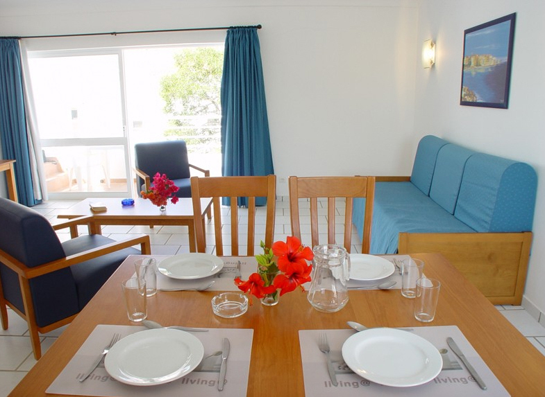 Die komfortablen Studios verfügen über einen kombinierten Wohn-/Schlafraum, Bad oder Dusche/WC, Telefon, Sat.-TV, Kitchenette, Kaffeezubereitungsmöglichkeit, Safe und Balkon oder Terrasse. Die geräumigeren Appartements verfügen bei sonst gleicher Ausstattung zusätzlich über einen separaten Schlafraum.