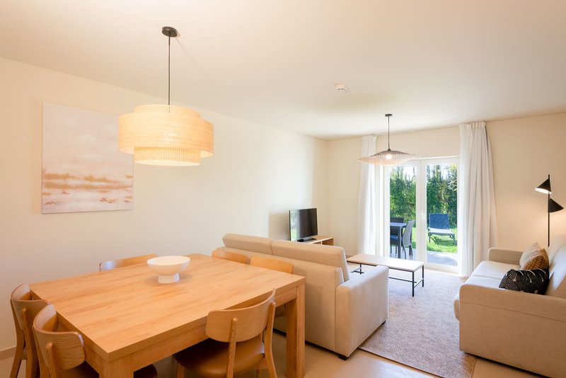 Appartement (2 Schlafzimmer): Die Appartements (2 Schlafzimmer) verfügen über die gleiche Ausstattung wie die Appartements (1 Schlafzimmer), sind jedoch größer (98m²) und bieten ein en-Suite Badezimmer sowie Schlafzimmer. Die Appartements befinden sich im Erdgeschoss und verfügen über einen möblierte Terrasse inkl. 2 Sonnenliegen. (A24)
