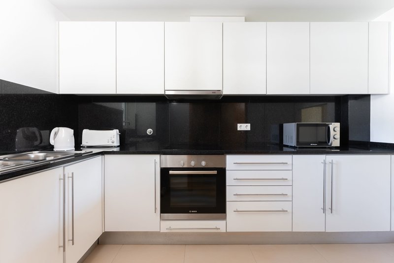 Appartement (1 Schlafzimmer): Die Appartements (1 Schlafzimmer) befinden sich in der ersten Etage, sind ca. 74m² groß und sind ausgestattet mit zwei Einzelbetten, Bad/WC und Föhn, Klimaanlage, LCD-TV, Telefon, Wi-Fi (inklusive), voll ausgestattete Küche, Safe (inklusive), Schlafsofa, Bügeleisen und -brett sowie eine möblierten Balkon mit Blick in den Garten. (A12).