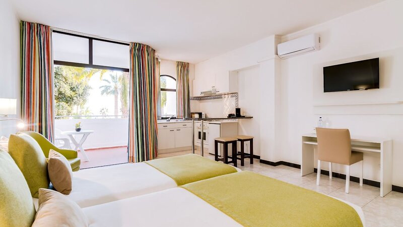 Die zweckmäßig eingerichteten Studios verfügen über einen kombinierten Wohn-/Schlafbereich, Bad oder Dusche/WC, Klimaanlage, Telefon, Sat.-TV, Mietsafe und Balkon oder Terrasse. Die Appartements sind bei gleicher Ausstattung geräumiger und verfügen zusätzlich über einen separaten Schlafraum. Die Superior-Wohneinheiten sind geräumiger als die Standard-Wohneinheiten und i.d.R. renoviert.