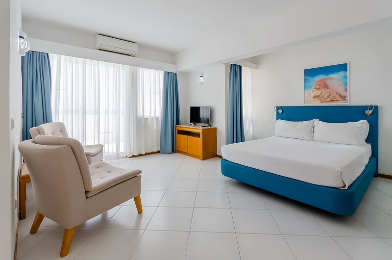 Az ízlésesen berendezett apartmanok konyhasarokkal és külön hálószobával, valamint káddal vagy zuhanyzóval/WC-vel, telefonnal, TV-vel, mini hűtőszekrénnyel és erkéllyel rendelkeznek, néhány részről oldalsó kilátás nyílik a tengerre. Törölközőcsere minden 2. napon, ágyneműcsere pedig minden 3. napon történik.