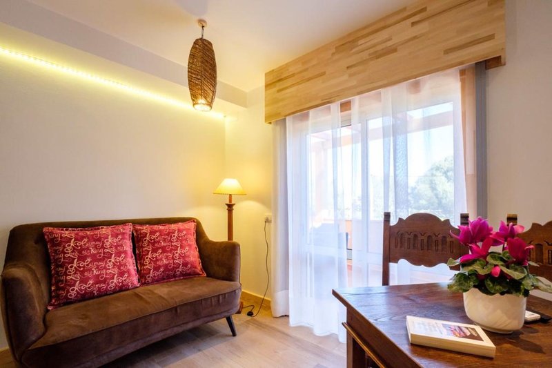 Suite: Die individuell dekorierten Suiten haben die gleiche Ausstattung wie die Doppelzimmer, sind jedoch größer (ca. 30 m²) und verfügen über einen kombinierten Wohn- und Schlafbereich (S2). Auch als Suite zur Alleinbenutzung buchbar (S1).