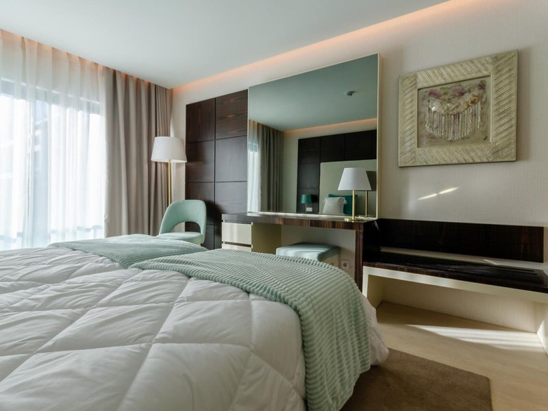 Felhívjuk figyelmét, hogy ha egy kétágyas szobát foglal több pótággyal, a szoba hasznos területe csökken. Ezért azt javasoljuk, hogy amennyiben elérhető, foglaljon közvetlenül egy vagy több szobából álló családi szobát, az adott szálloda elérhetőségétől és ajánlataitól függően. Ezenkívül az ágyak mérete a szállodai bútorok regionális jellemzőitől függ.