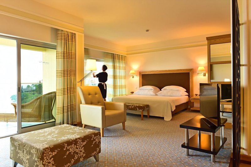 Tengerre néző lakosztály: A lakosztályok nagyobbak, mint a junior lakosztályok (kb. 70 m²), és külön hálószobával rendelkeznek a nappaliból és a tengerre néznek.