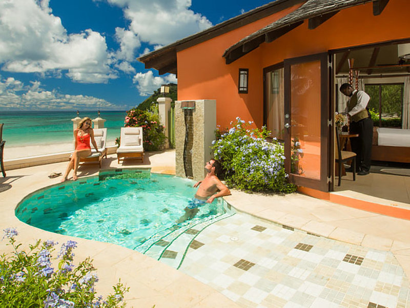 - Caribbean Beachfr. 1BR Butler Suite - 1B (SUX1), Suite, Mindestalter im Zimmer: 18 Jahre, erste Strandreihe, Poolseite, Meerblick, Poolblick, Gesamtanzahl der Räume in diesem Zimmertyp: 2, Aufteilung wie folgt: Wohnzimmer, 1 Schlafzimmer, 1 King Size Bett, Klimaanlage: individuell regelbar, Fußboden: Fliesenboden, Safe: ohne Gebühr, Deckenventilator, Sitzecke, Bügeleisen, Bügelbrett, Kaffee-/Teezubereiter, Minibar: ohne Gebühr, Softdrinks: ohne Gebühr, Wasser: ohne Gebühr, Minibarauffüllung, Telefon, Internet: WLAN/WiFi: ohne Gebühr, Fernseher: Flatscreen, im Wohnbereich, im Schlafzimmer, Kabel-TV, Radio, Roomservice, Butlerservice, separate Dusche, Whirlpool, WC, Föhn, Balkon: mit Liegen