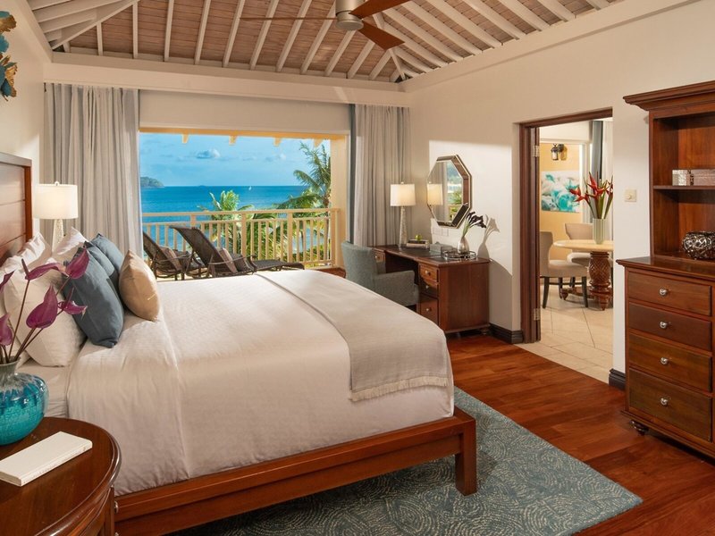 - Caribbean Honeymoon Beachview Grande Luxe - GL (DZX4), Doppelzimmer, Mindestalter im Zimmer: 18 Jahre, Meerseite, Poolseite, Meerblick, Poolblick, Gesamtanzahl der Räume in diesem Zimmertyp: 1, Aufteilung wie folgt: kombiniertes Wohn-/Schlafzimmer, 1 King Size Bett, Klimaanlage: individuell regelbar, Fußboden: Fliesenboden, Safe: ohne Gebühr, Deckenventilator, Sitzecke, Bügeleisen, Bügelbrett, Kaffee-/Teezubereiter, Minibar: ohne Gebühr, Softdrinks: ohne Gebühr, Wasser: ohne Gebühr, Minibarauffüllung, Telefon, Internet: WLAN/WiFi: ohne Gebühr, Fernseher: Flatscreen, Kabel-TV, Radio, Badewanne oder Dusche, WC, Föhn, Balkon: mit Sitzgelegenheit