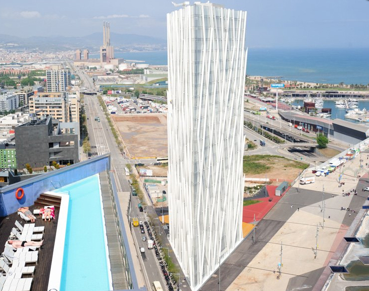 szálloda Barcelona egyik legszembetűnőbb épülete, közvetlenül a feltörekvő Poblenou negyed sétányán található. Vásárlási és szórakozási lehetőségek a közvetlen közelben találhatók. A városközpont körülbelül 20 percre található. A barcelonai repülőtér körülbelül 19 km-re található.