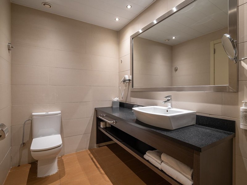 So wohnen Sie: Für angenehmes Raumklima in den Zimmern sorgen eine Klimaanlage und eine individuell steuerbare Heizung. Ein Balkon gehört zur Grundausstattung der meisten Zimmer. Die Zimmer verfügen über ein Queensizebett und ein Sofabett. Zustellbetten können angefordert werden. Außerdem sind ein Safe, eine Minibar und ein Schreibtisch verfügbar. Eine Tee-/Kaffeemaschine zählt ebenfalls zur Standardeinrichtung. Ein Bügelset ist für den zusätzlichen Komfort der Gäste verfügbar. Darüber hinaus sind ein Telefon mit Direktwahl, ein TV-Gerät mit Satelliten-/Kabelempfang und WiFi (ohne Gebühr) vorhanden. Im Badezimmer, mit einer Dusche und einer Badewanne ausgestattet, stehen für die Gäste ein Haartrockner und ein Telefon bereit. Für besonderen Komfort in den Badezimmern sorgen Kosmetikartikel. Buchbar sind rollstuhlgerechte Zimmer.