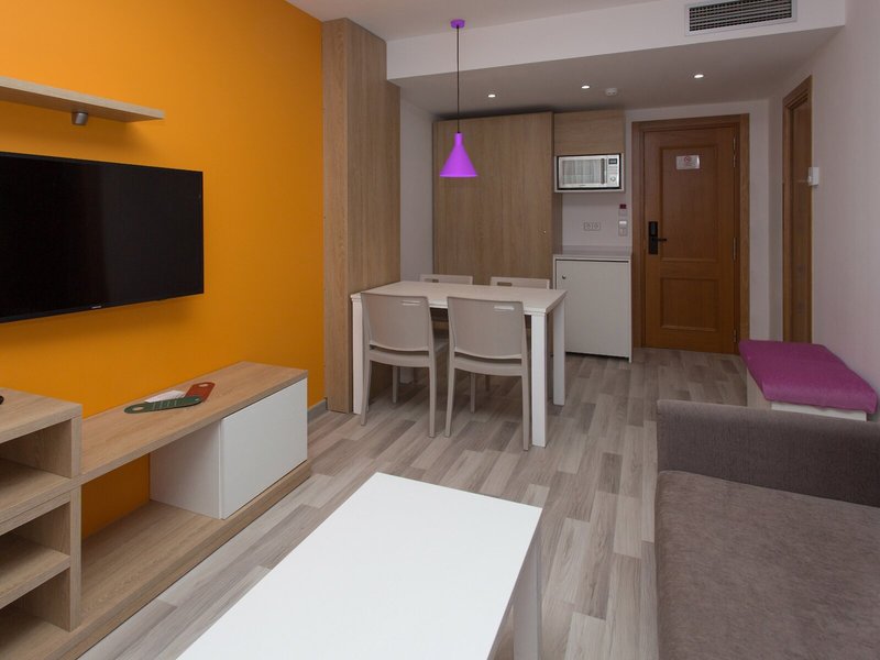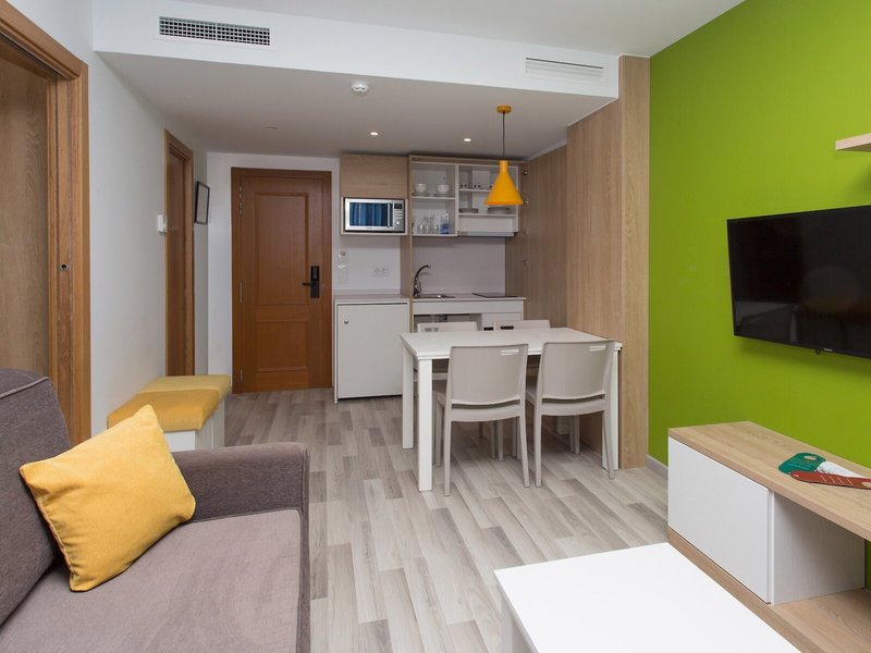 So wohnen Sie: Die Zimmer sind mit einem Wohnbereich, einer Küche und einem Badezimmer ausgestattet, außerdem sorgen eine Klimaanlage und eine Heizung für gutes Raumklima. In den meisten Zimmern ist ein Balkon oder eine Terrasse vorhanden. Gemütlich schlafen können die Gäste auf einem Sofabett. Zustellbetten können angefordert werden. Außerdem sind ein Safe und eine Minibar verfügbar. In der Kochnische befinden sich ein Kühlschrank, ein Minikühlschrank und eine Mikrowelle. Besten Urlaubskomfort bieten ein Telefon mit Direktwahl, ein TV-Gerät mit Satelliten-/Kabelempfang und WiFi (ohne Gebühr). Im Badezimmer, mit einer Dusche und einer Badewanne ausgestattet, stehen für die Gäste ein Haartrockner und ein Telefon bereit. Als Besonderheit genießen die Gäste in den Badezimmern Kosmetikartikel und eine Auswahl an Handtüchern. Buchbar sind rollstuhlgerechte Zimmer. Das Apartmenthotel bietet Familien-, Nichtraucher- und Raucherzimmer.