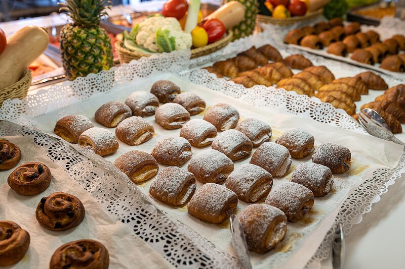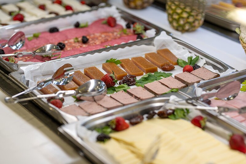 A reggelit, az ebédet és a vacsorát svédasztalos rendszerben szolgálják fel.
