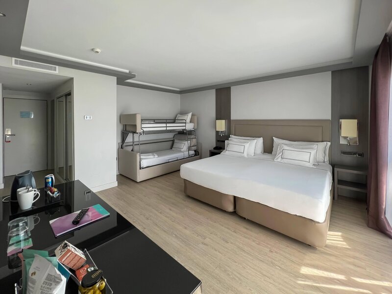 Felhívjuk figyelmét, hogy ha egy kétágyas szobát foglal több pótággyal, a szoba hasznos területe csökken. Ezért azt javasoljuk, hogy amennyiben elérhető, foglaljon közvetlenül egy vagy több szobából álló családi szobát, az adott szálloda elérhetőségétől és ajánlataitól függően. Ezenkívül az ágyak mérete a szállodai bútorok regionális jellemzőitől függ.