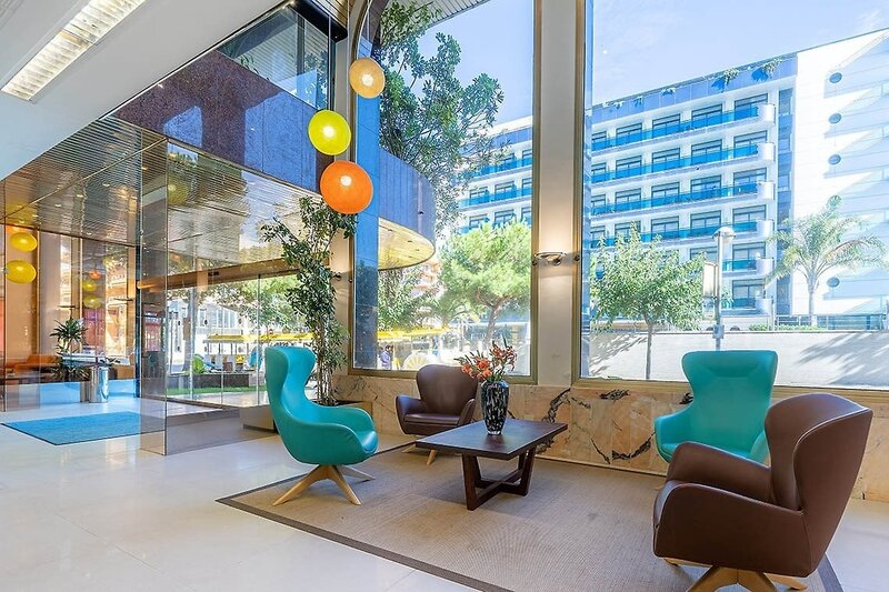 Die Anlage verfügt über insgesamt 174 komfortable Zimmer, welche sich auf mehrere Etagen verteilen. Zu den Einrichtungen zählen ein Empfangsbereich mit Rezeption/Lobby, Klimaanlage, WLAN (gegen Gebühr), 2 Lifte, 1 Buffetrestaurant, 1 Bar, 1 Konferenzraum, Hallenbad (im Nachbarhotel Blaucel) sowie Parkmöglichkeiten (gegen Gebühr). Im Außenbereich finden Sie eine große Sonnenterrasse mit Swimmingpool sowie einem integrierten Kinderbecken und eine Pool-/Snackbar. Liegen und Sonnenschirme stehen Ihnen am Pool kostenfrei zur Verfügug. Am Strand sind Liegen und Schirme gegen Gebühr verfügbar.