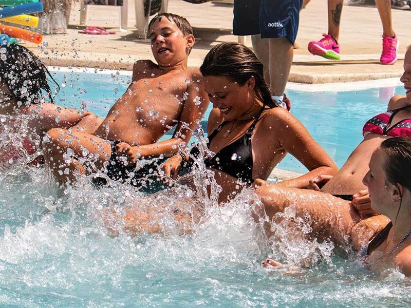 Sport & Fitness: Erholung und sportliches Badevergnügen garantiert die Poolanlage mit 4 Schwimmbecken. Bequeme Liegestühle stehen auf der Terrasse bereit. Eine Pool-/Snackbar ist vorhanden. Abwechslung bieten viele verschiedene Sportaktivitäten, die in dem Hotel angeboten werden, wie z.B. Boccia, Beachvolleyball und Angeln und gegen Gebühr Radfahren/Mountainbiking, Tennis, Minigolf, Golfen und Reiten. Mit Schnorcheln und gegen Gebühr Windsurfen, Motorbootfahren, Segeln und Tauchen kommen auch Wassersportfreunde auf ihre Kosten. Das Apartmenthotel bietet eine Vielzahl an Möglichkeiten zur sportlichen Aktivität im Indoor-Bereich, z.B. Tischtennis und Billard sowie gebührenpflichtig ein Fitnessstudio, Bowling und Squash. Im Wellnessbereich stehen Spa und Solarium zur Verfügung. Während sich die Eltern entspannen, können Kinder an einem bunten Spiele- und Unterhaltungsprogramm teilnehmen.