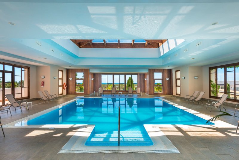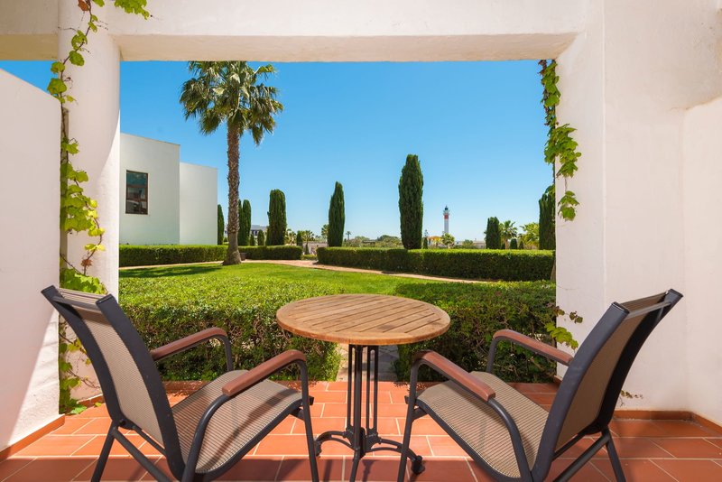 Ausstattung: Das im andalusischen Stil erbaute 4-Sterne-Hotel der Fuerte Group Hotelkette verfügt über insgesamt 299 Zimmer auf 6 Etagen. Zur Ausstattung gehören ein hell gestalteter Empfangsbereich mit 24 h-Rezeption und Sitzgruppen, 6 Aufzüge, ein Aufenthaltsraum mit Internetecke (gegen Gebühr), 4 Veranstaltungs-/Konferenzräume, ein TV-Raum, ein Souvenirshop, eine Boutique, ein Friseur, das Restaurant "El Olivo", das Restaurant "Dosfaros" (saisonal von Mitte Juni- Mitte September täglich geöffnet von 11-19 Uhr/Zeiten können geändert werden), die Bar "Noble" mit Außenterrasse. Im gepflegten Außenbereich mit Garten liegen zwei Swimmingpools mit Sonnenterrasse. Liegen und Sonnenschirme stehen den Hotelgästen am Poolbereich kostenfrei zur Verfügung (am Strand gegen Gebühr, angeboten durch lokale Anbieter).