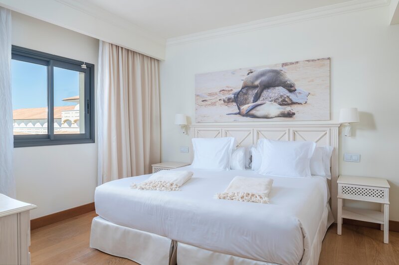 Die im andalusischen Stil errichtete Hotelanlage liegt ruhig in Chiclana de la Frontera und wird nur durch eine kleine Laufbrücke vom weitläufigen weißen Sandstrand getrennt. Ein Einkaufszentrum mit Restaurants und Bars befindet sich in der Nähe. Die Entfernung zum Flughafen Jerez beträgt etwa 64 km.