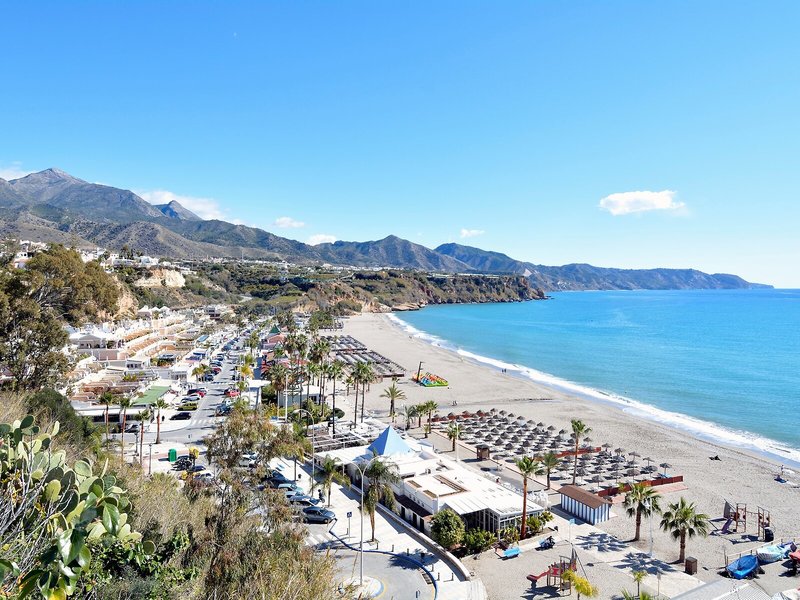 Lage & Umgebung Die Apartments liegen in einem ruhigen Wohngebiet, ungefähr 150 m vom Strand und etwa 5 min vom Stadtzentrum von Nerja entfernt. Zum Touristenzentrum von Cuevas de Nerja sind es rund 3 km und die Entfernung zum Flughafen in Malaga beträgt ungefähr 57 km.