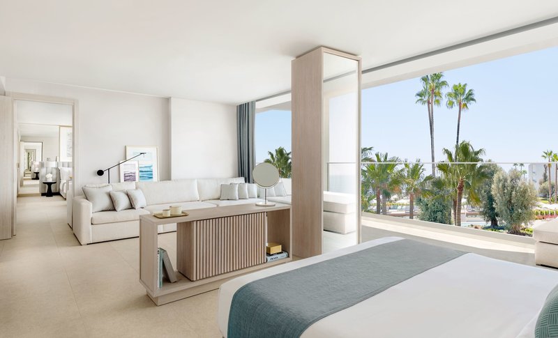 Familiensuite mit Meerblick: Diese ca. 100 m² großen Familiensuiten bieten Schlafmöglichkeiten für bis zu 5 Personen. Die Suite verfügt über zwei mit einander verbundene Zimmer mit Meerblick. Zur weiteren Ausstattung gehören eine Klimaanlage, Heizung, Tee- und Kaffezubehör, einen Smart TV mit Sharing Funktion, Minibar und Wi-Fi. Luxuriöse Kosmetikartikel, Haartrockner, Slipper, Bademäntel und ein Safe sind ebenfalls vorhanden.(2FM). Auch unter AGPA99 buchbar.