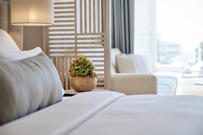 Deluxe Junior Suite Sea View: A Deluxe Junior Suite Sea View nagyobb vagy tágasabb (kb. 55 m²), és ugyanolyan felszereltséggel rendelkezik, mint a Promo kétágyas szobák, és tengerre néző (JDM).