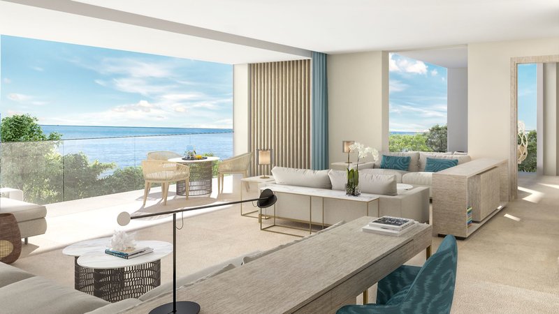 Deluxe Suite privater Pool (2 Schlafzimmer): Die Deluxe Suiten privater Pool verfügen über die gleiche Größe und Ausstattung wie die Deluxe Suiten (2 Schlafzimmer). Zusätzlich verfügen die Suiten über einen privaten Pool auf der Terrasse und haben einen seitlichen Meerblick. Kinder ab 6 Jahren buchbar (2RN).