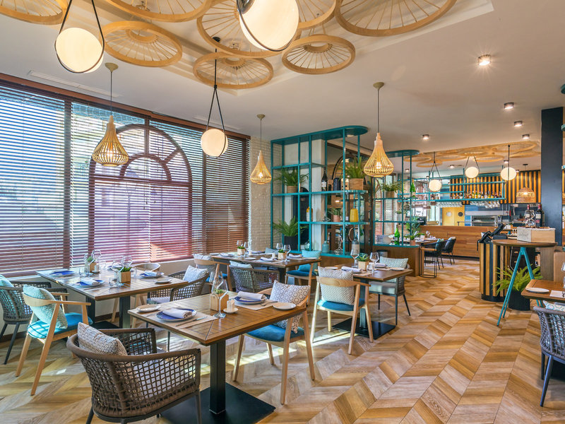 - Főétterem mediterrán: Konyha: nemzetközi, mediterrán, spanyol, svédasztalos, két étkezés este