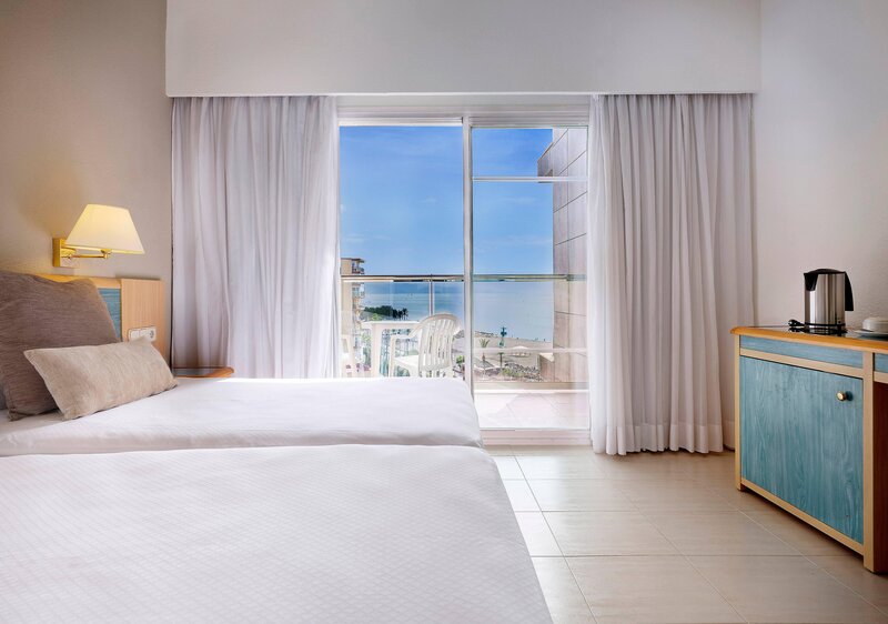 A hangulatos és világos kétágyas szobák káddal vagy zuhanyzóval/WC-vel, hajszárítóval, légkondicionálással (szezonális), fűtéssel, telefonnal, műholdas TV-vel, WiFi-vel (térítés ellenében), mini hűtőszekrénnyel, bérelhető széffel, terasszal rendelkeznek. részleges kilátással a tengerre. A családi szobák tágasabbak, ugyanolyan felszereltséggel, és medencére vagy tengerre néző kilátással is foglalhatók. Az egyágyas szobák kétágyas szobák egyszemélyes használatra.